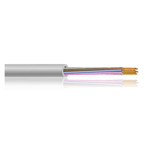 Flexible halogen-free data transmission, control and interconnecting cable for measuring, control and regulation technology, intercom systems, machine, tool and equipment manufacturing and electronics, especially where small dimensions are required. Suitable for use in buildings where the release of halogens in the event of fire must be avoided in dry and damp rooms, or concealed, but not outdoors or in the ground.